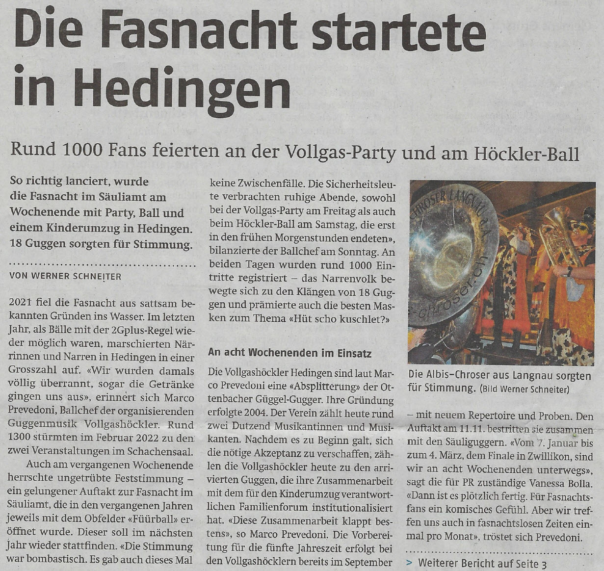Dienstag, 7. Februar 2023 - Bericht im Anzeiger aus dem Bezirk Affoltern